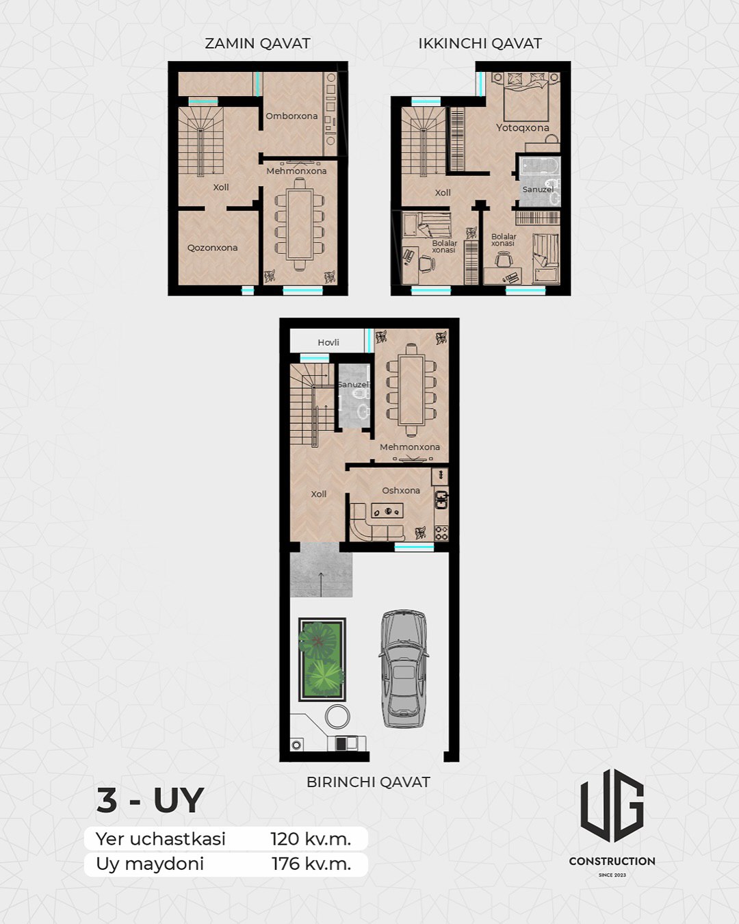 Коттеджный поселок бизнес-класса у мечети Кушкурган. Закрытая территория, подвал, гараж.