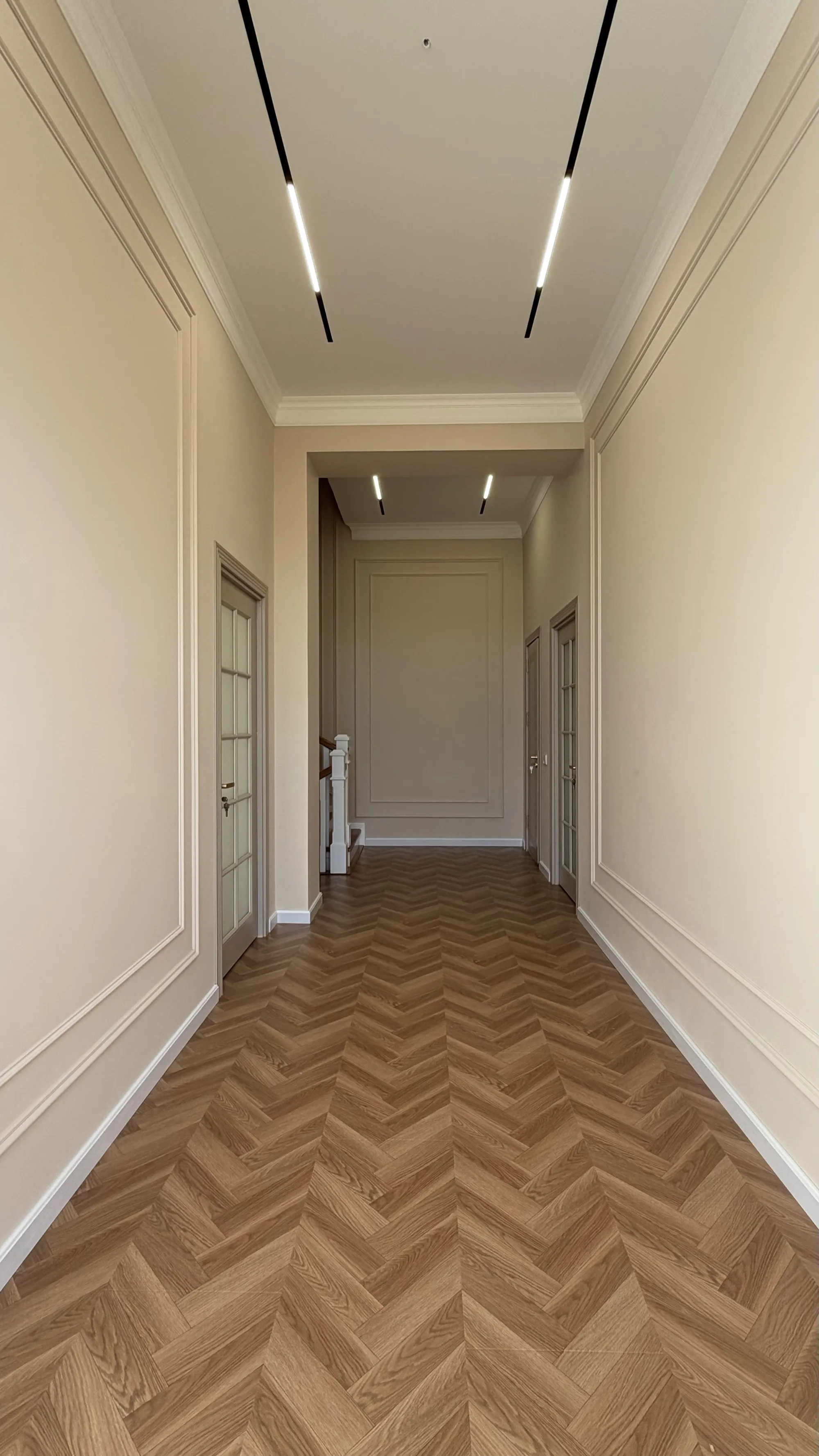 Двухуровневый с подсветкой, рельсовое освещение