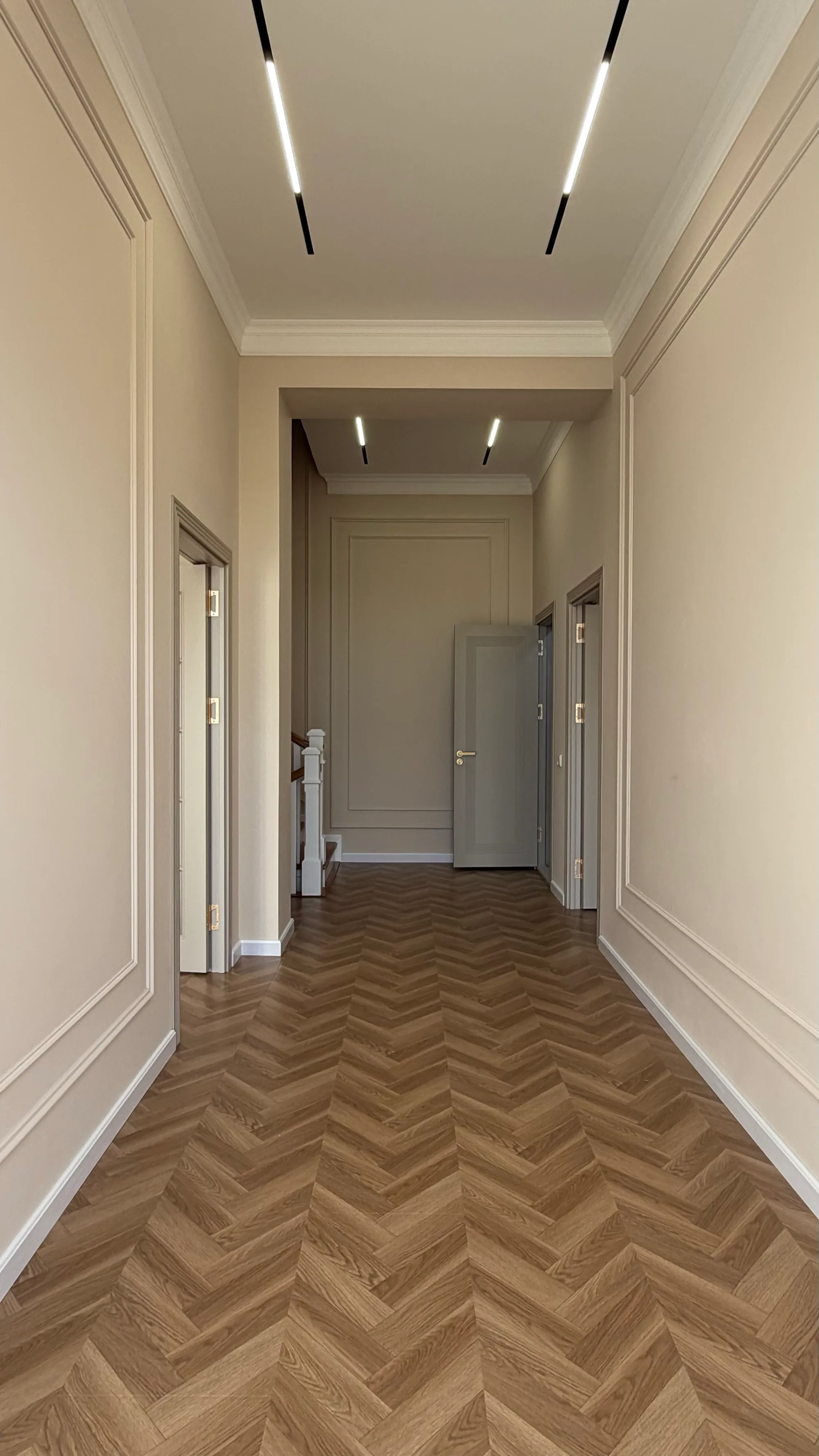 Двухуровневый с подсветкой, рельсовое освещение